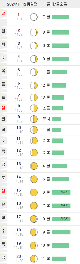 7~8일이 물때 max!
