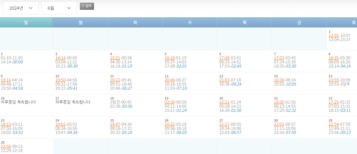 전날은 적색 밑줄, 다음날은 청색 밑줄이니 캘린더 보실 때 시간 참고하세요 :)